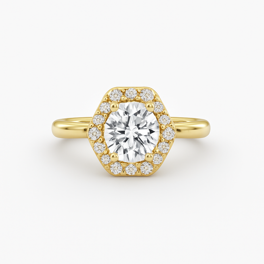 2 ct to 8 ct Diavont Hexagon Halo Engagement Ring