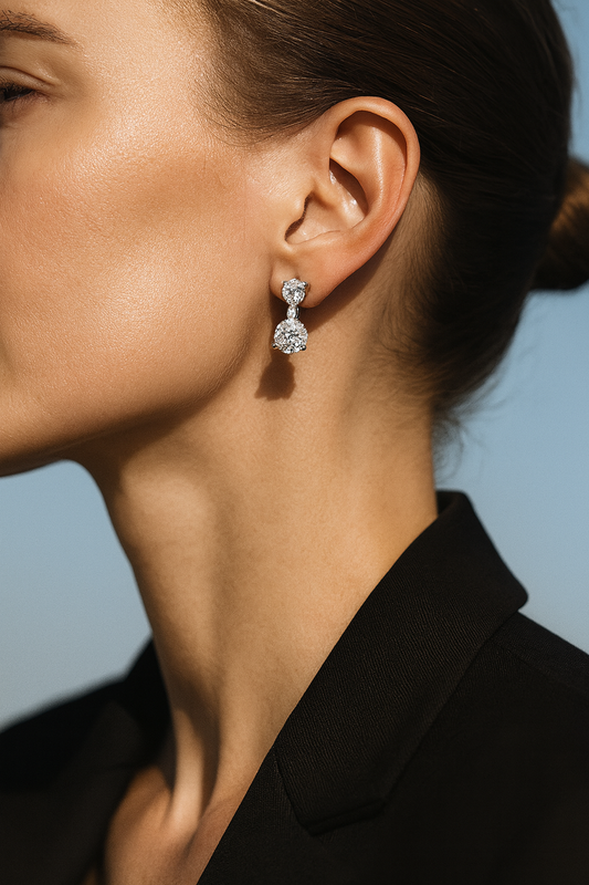 3 Carat Double Drop Earrings with Round-Cut Diamonds