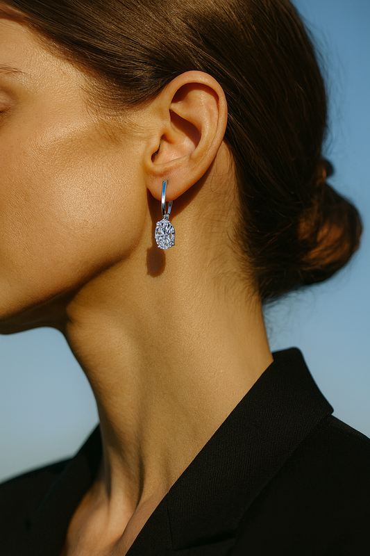 2 Carat Round-Cut Diamond Halo Drop Earrings