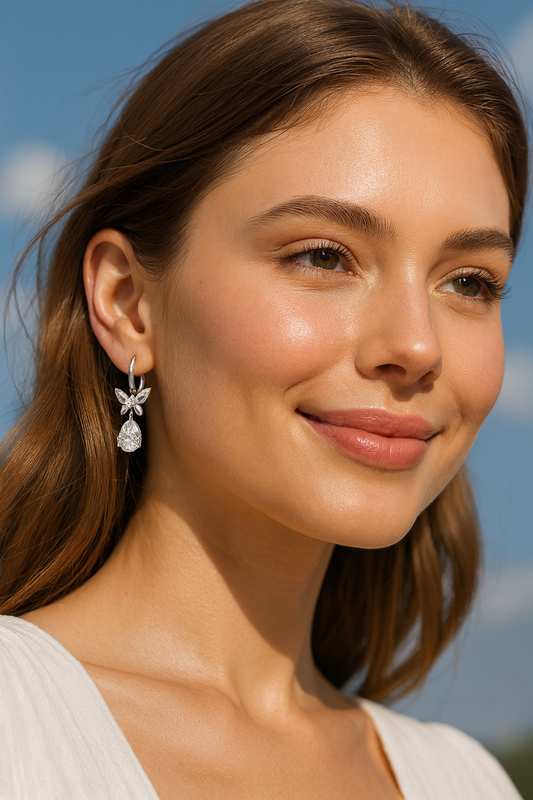 6 Carat Trio-Cut Diamond Drop Earrings with Pear, Emerald, and Marquise in Sterling Silver