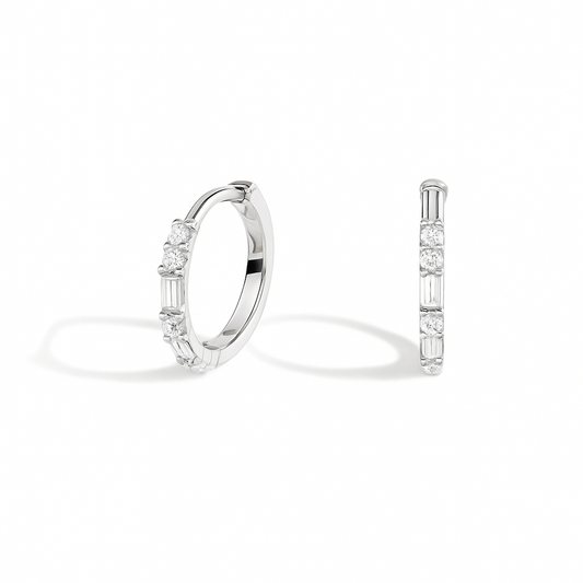 2 ct Diavont Baguette and Round Diamond Huggie Hoop Earrings, 14k Gold