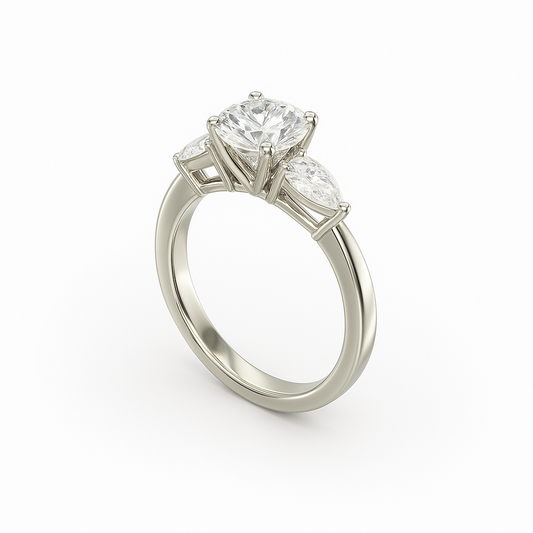 2 ct to 8 ct Diavont Three-Stone Round Cut Diamond Ring Mounting with Pear Side Stones