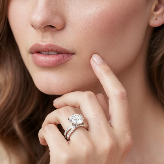 2 Carat to 8 Carat Diavont Round Diamond Ring with sidestones